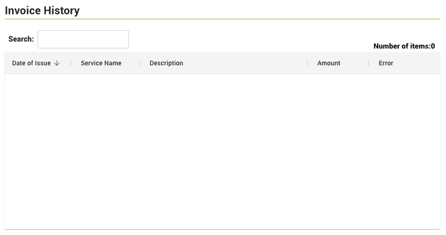 The "Invoice history" window displays invoice information for the ibis products you are using.