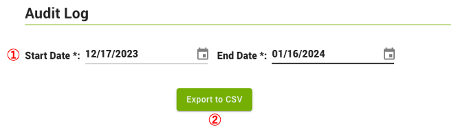 The "Audit Log" window allows you to download information such as users who accessed the organization, date and time, operation details, IP addresses, etc., in a CSV file for a specified period of time.