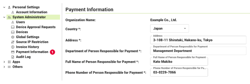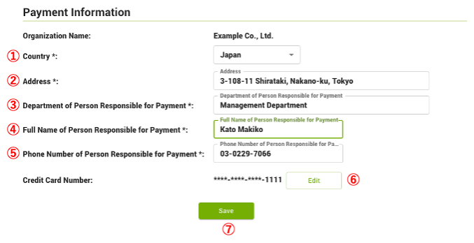 - ③ Department of Person Responsible for Payment (required)
