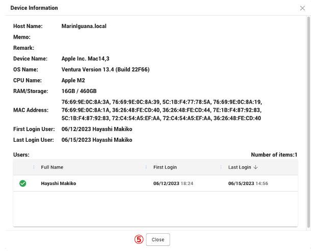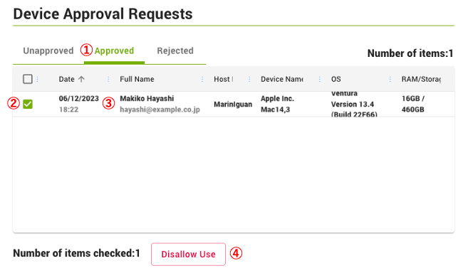 - Displays a list of Devices for which "Device Approval Request" has been approved.